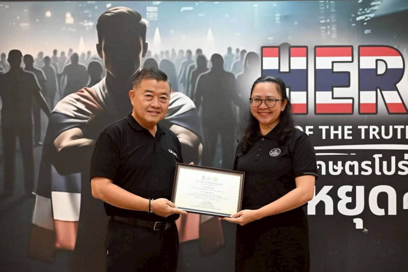 เกียรติบัตรองค์กรคุณธรรม ประจำปีงบประมาณ พ.ศ. 2568 และผู้เข้าร่วมงานร่วมแสดงสัญลักษณ์ต่อต้านการทุจริตและถ่ายภาพหมู่ร่วมกัน เพื่อยกระดับความโปร่งใส เสริมสร้างคุณธรรมและธรรมาภิบาล และสร้างความเชื่อมั่นต่อการปฏิบัติงานของหน่วยงานภาครัฐ